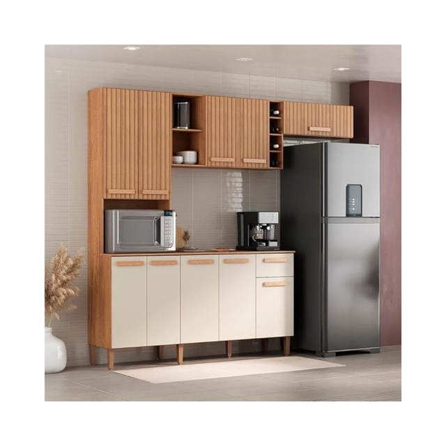 Armário Cozinha Atualle Ravena 10 Portas 1 Gaveta - Canelato+3D/off White