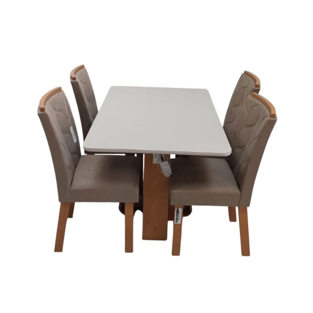 Conjunto de Mesa Lopas 1.20M Sintonia 04 Cadeiras Ame/Off White