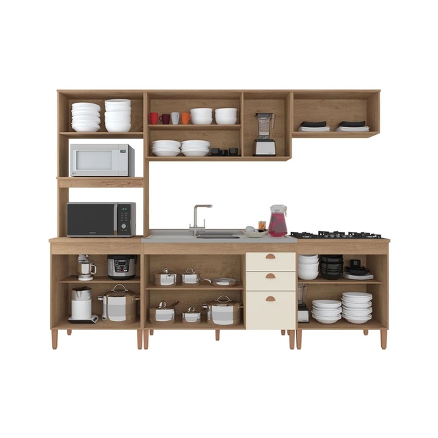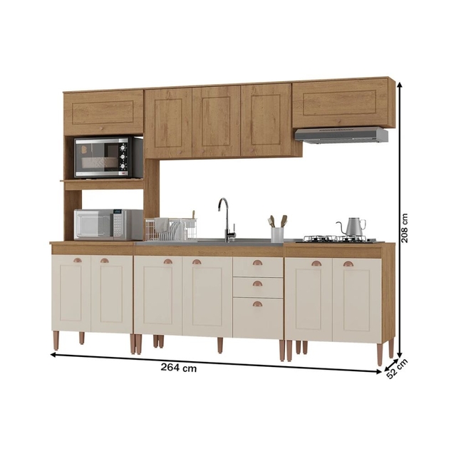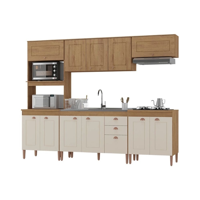 Cozinha Atualle Viena 12 Portas 2 Gavetas - Canelato/Natura Off White