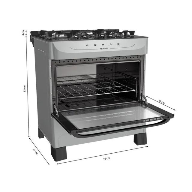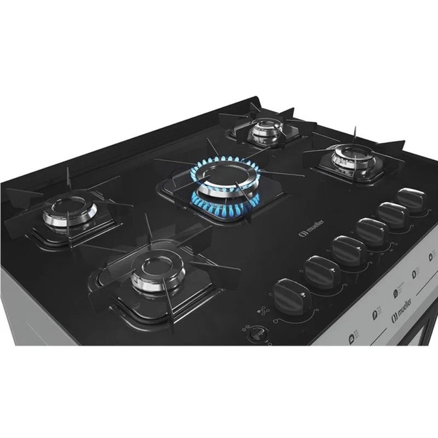 Fogão De Piso Mueller 5 Bocas Mesa De Vidro Titânio MFV5BB – Bivolt