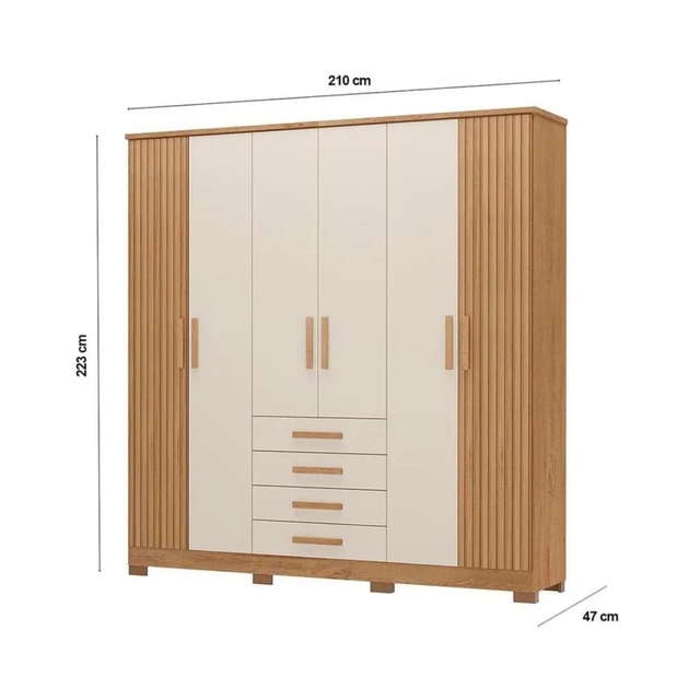 Guarda Roupa Casal Atualle Lugano 06 Portas 04 Gavetas Canelato/Rústico