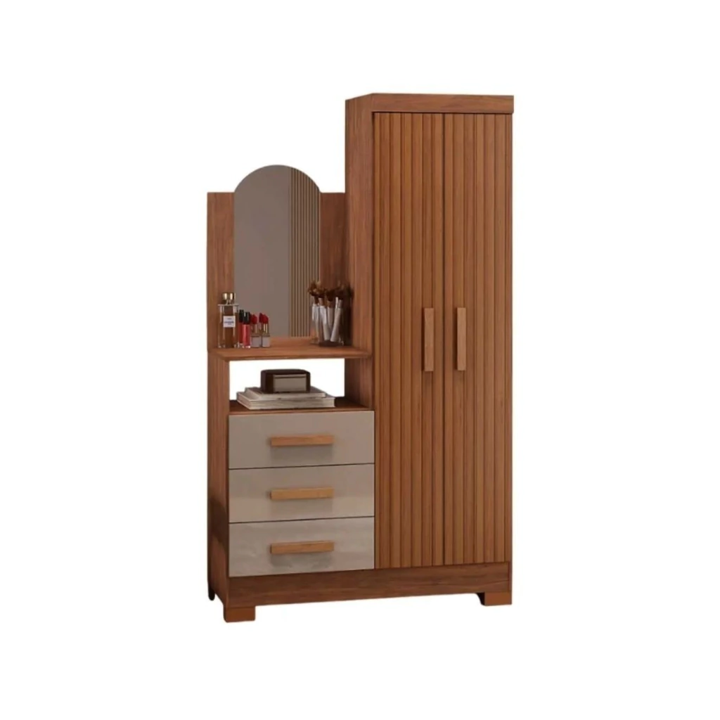 Guarda Roupa com Cômoda Atualle Teresina 2 Portas 3 Gavetas - Canelato/Natura Off White