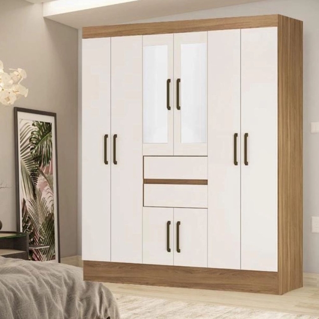 Guarda Roupa Casal 8 Portas Munique Com Espelho Elite Amendola/Off White – Demóbile