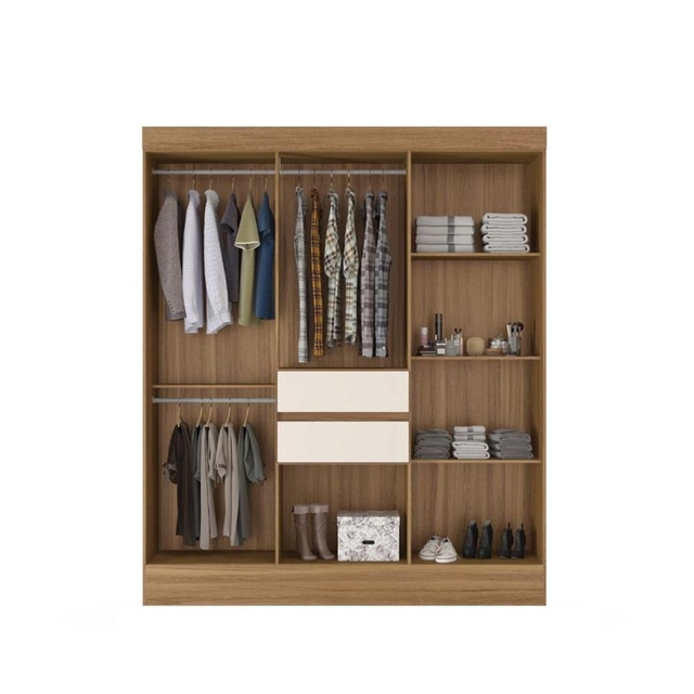 Prático e versátil este modelo apresenta ótima distribuição interna. Prateleiras garantem a acomodação de diferentes tipos de objetos; São três cabideiros em alumínio e 5 compartimentos para acomodação de diversos tipos de pertences, grandes ou pequenos; Em seu exterior duas gavetas com maior profundidade que acompanham corrediças metálicas. Sem dúvidas é um móvel completo produzido em mdp de alto padrão e com acabamento de pintura uv. Para garantir a qualidade do produto dentro da embalagem, as caixas são revestidas por um plástico termoencolhível e todas as peças são separadas por isomanta, tudo para preservar e evitar o atrito entre as peças dentro da embalagem. Você contará também com um manual com o passo a passo para auxiliar no momento da sua montagem.