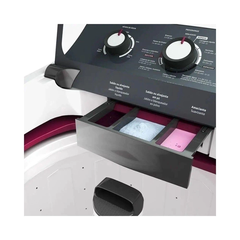 - Dispenser: Gaveta com compartimentos específicos para sabão em pó ou líquido, amaciante e alvejante.