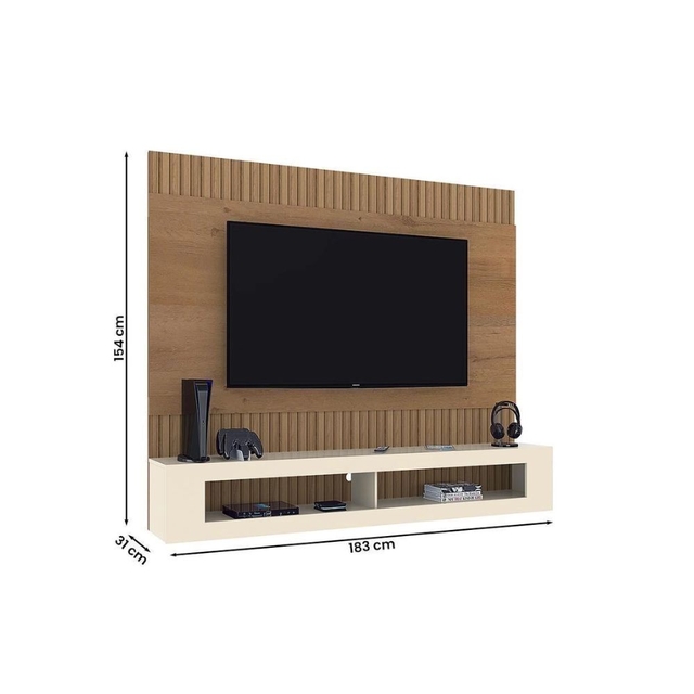 Painel Sala San Diego Para Tv Até 65 Polegadas Canelato + 3d Canelato/off White Canelato + 3d Canelato/off White