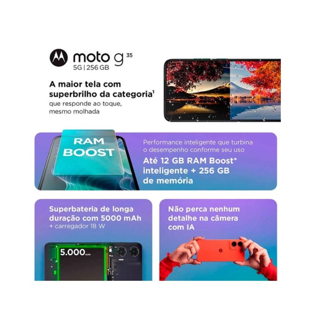 Smartphone Motorola Moto G35 5G 256GB 12GB Ram (4GB RAM + 8GB RAM Boost) Tela 6,7” Coral